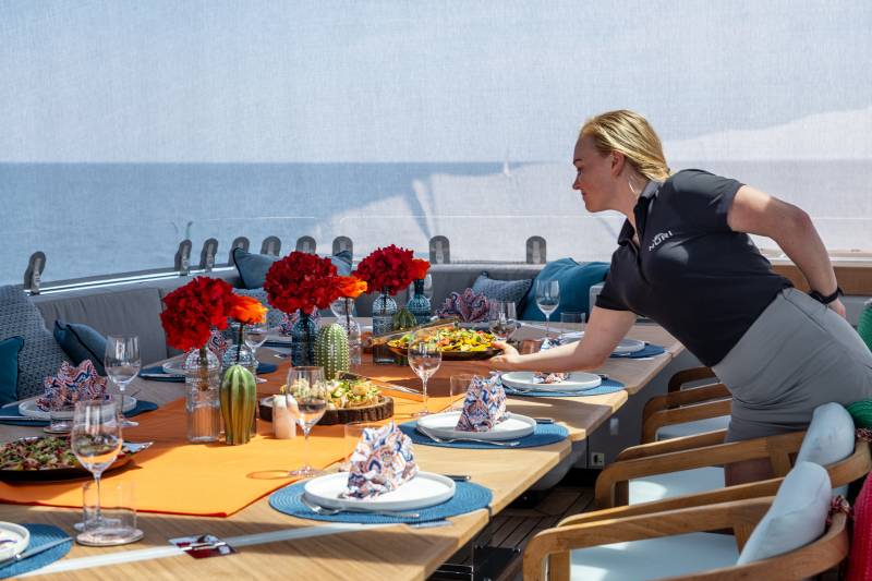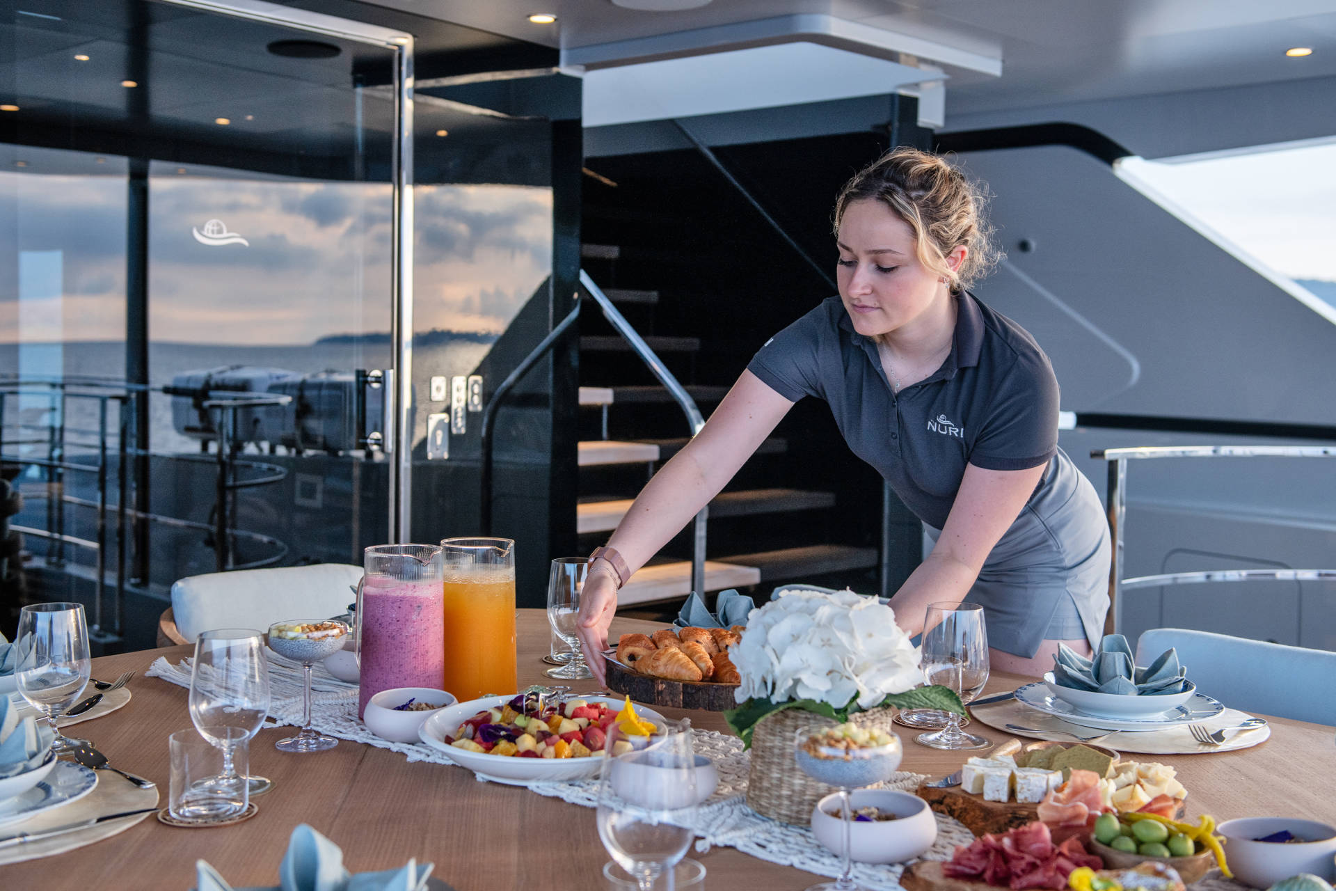 This sense of exploring and combining to create something unique is something Mykhailo does every day for guests on board the beautiful Nuri – a 41-metre expedition yacht with a dedicated crew of nine, and space to accommodate up to 12 guests. “One evening, guests might enjoy a Mexican-Thai main course of achiote chicken with green Thai sauce, and the next, a Greek-American dish of an orzo mac ‘n cheese, perhaps followed by a deconstructed tiramisu with a light-as-air mascarpone foam. But I’ll always try to put my own little twist on the dish.” Having grown up close to Georgia, Mykhailo also likes to experiment with Georgian cuisine, elevating meat-heavy traditional fare to something more gourmet by using the most succulent wagyu instead of a regular cut of steak, for example.
