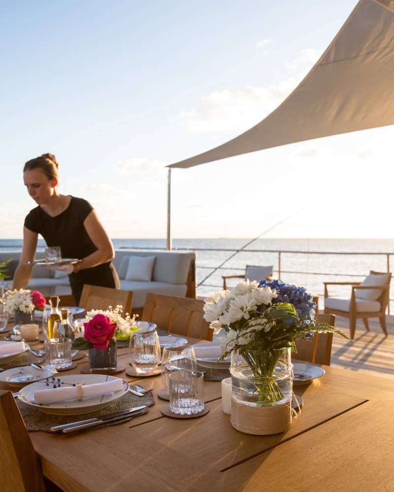Evenings might mean a floating bar set up near the beach, cocktails at sunset, dinner back on board, and a cinema under the stars. “That’s the magic of JeMaSa: every day felt different, but it always ended with that same sense of awe.”