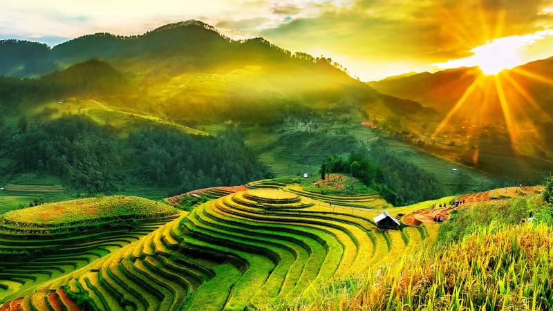 In the rugged peaks that surround Vietnam’s Red River Delta, hilltop villages are scattered atop fields of towering rice terraces. These are more than fields, they are agricultural feats of precision – emerald stairways that ascend the rolling hillsides in a wash of dizzying greens.