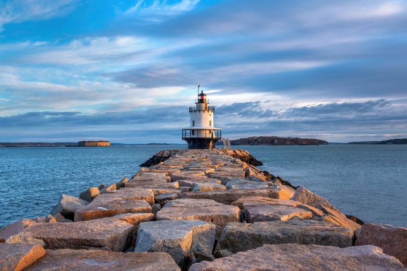 Cruise north to Maine’s rugged coastline, where pine-fringed cliffs, working harbors, and iconic lighthouses create a dramatic nautical backdrop. Drop anchor near Camden or Bar Harbor for a dose of small-town charm and dockside dining at its finest. Feast on buttery lobster rolls and watch whales breach offshore in this idyllic setting.