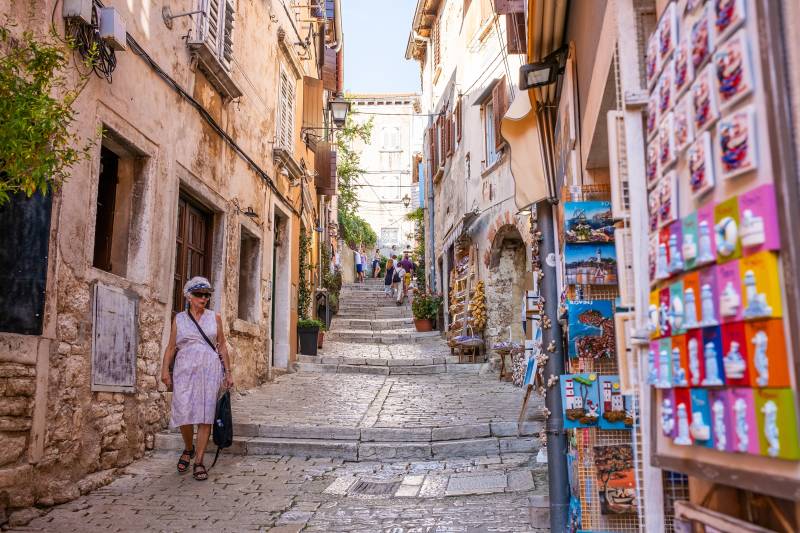 For Rovinj residents, life’s a beach. Blue Flag sands garland a coastline scented with eucalyptus and pine. As jetskis disrupt the serious sport of sunbathing, the scene here is sea kayaks and SUPs. Plus Instagram slow-mos of cliff dives into the drink. The biggest and best beaches trim Golden Cape, a nature reserve planted with exotic trees by an Austro-Hungarian count. Adrenaline junkies can windsurf mirror flat seas. Or free climb in an abandoned marble quarry behind Zlanti beach.