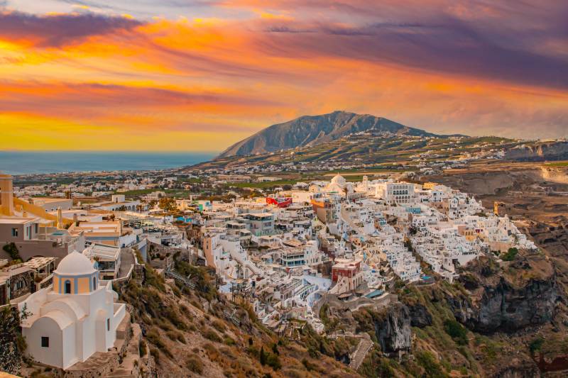 Volcanoes colour every beach too. Red Beach is a martian moonscape set against topaz snorkel shallows. White Beach is purer than snow and will tan any guest not wearing SPF 50. Perissa Beach promises black sand, green tamarisks and windsurfs of every shade. As Santorini has over 20 beaches to choose from, there’s always room for towables, inflatables, free diving and cliff jumping. No need to fret about clouds. From May through August, there's never less than 12 hours of sunshine on Santorini per day.