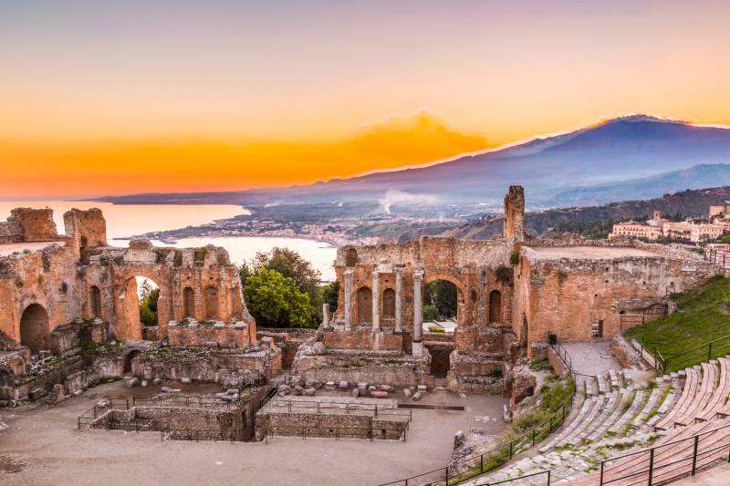 Taormina lives under the shadow of Mount Etna. Europe’s largest and most active volcano. Seismic activity nourishes Taormina’s awesome cuisine - and live-for-today spirit. Enjoy a cooking class in a Sicilian farmhouse. Drink in a private wine tasting in DOP Etna vineyards. Sample seafood paired with volcanic tomatoes and chillies at a local chef’s home. Taormina’s seaside setting is so pretty you could eat it.