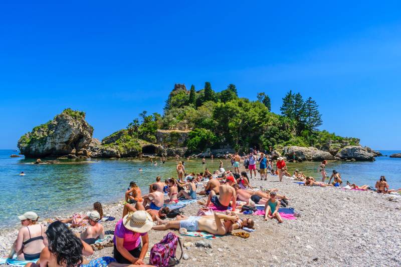 Taormina is civilisation lived large. Act a Greek tragedy in the Teatro Antico. Stride like a senator on Roman mosaics. Gaze at statues carved before Christopher Columbus set sail. Witnessing Taormina will require several espressos. That’s just the start. Because Taormina tumbles into translucent seas riven with caves, coves and tiny islands. Like Isola Bella. A verdant islet reached by a necklace-thin sandbar. And Spiaggia San Marco. A curving beach framed by eucalyptus trees.