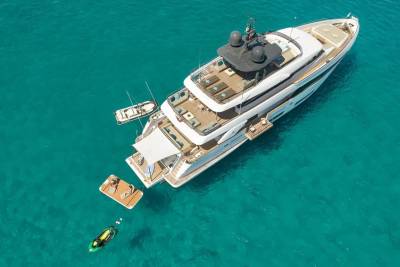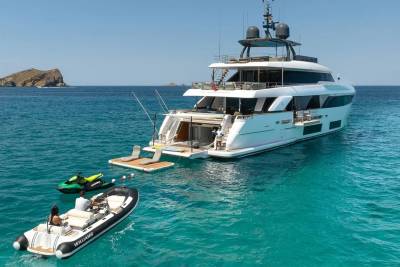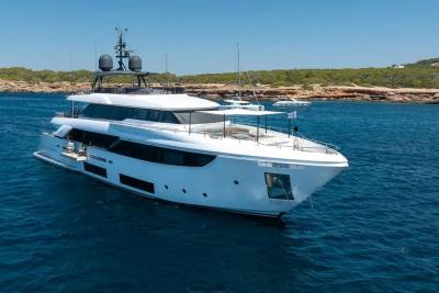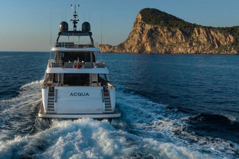 Welcome to La Dolce Vita. Acqua is a Custom Line Navetta 33m yacht for sale built by Ferretti in 2020. Acqua is a motor yacht that brings together gorgeous Italian design and relaxed cruising comfort. With naval architecture by Zuccon International Project, she’s as stylish as she is seaworthy. A fold-out balcony terrace on main salon, wide open spaces and five serene staterooms for up to 11 guests make her an inspired choice. Expect spa-deck lounging, jacuzzi evenings, and smooth, stabilised sailing across every mile. From her full-beam Owner’s suite to sky lounge sundowners, Acquais the kind of yacht that makes you feel at home the moment you step on board.