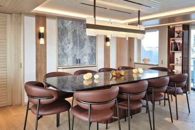 Ad Astra sleeps 10 in five staterooms, led by a full-beam master on the main deck. Here you wake up in the lap of luxury, cocooned in a private haven. Below, two doubles and two twins, plus Pullmans, give families and friends options and flexibility. Every cabin is ensuite, beautifully calm, and optimised for deeply restorative sleep.