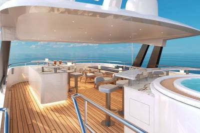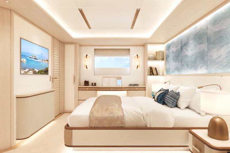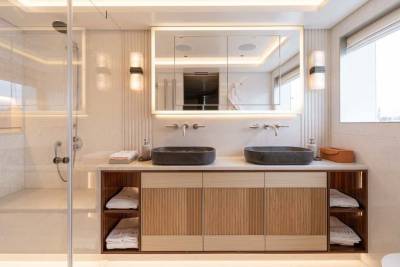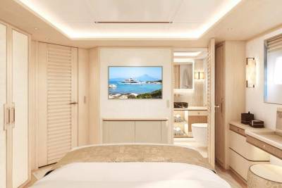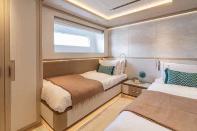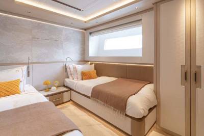 Delivered in 2025, Ad Astra has all the benefits of a brand-new super yacht. Interiors are the epitome of contemporary luxe. The finest of natural materials are brought together with taste to provide a harmonious finish that leaves a lasting impression. Ad Astra’s full-beam master suite is found on the main deck, with four additional guest staterooms for friends and family. All with en suite.