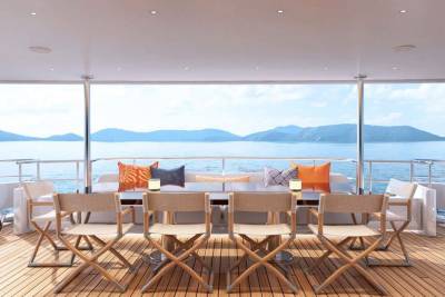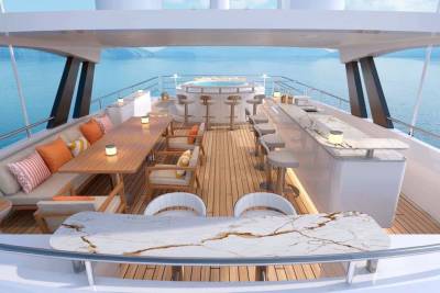 Movement is seamless between indoor and outdoor zones. Ad Astra keeps the vibe social, never crowded, always flowing. Up top, the sundeck is where it’s at. Jacuzzi, giant sun pads and bar. Long lunches here stretch easily into sundowners, then into late-night stories under the stars. You can keep it mellow with a book and a breeze or turn the music up and let the crew build a proper deck party. Ad Astra moves with your mood.