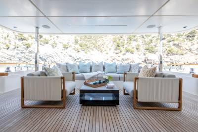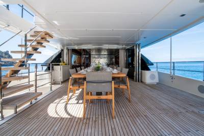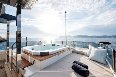 A yacht charter on Alberry is time well spent. The yacht offers a range of spaces for relaxation, socializing and enjoyment. Previously known as Mac One, the yacht’s guest-centric design is a hit with charter guests. From the sun deck with large jacuzzi and surrounding sun pads to the bridge deck dining, wherever you are on board you will be guaranteed absolute comfort.