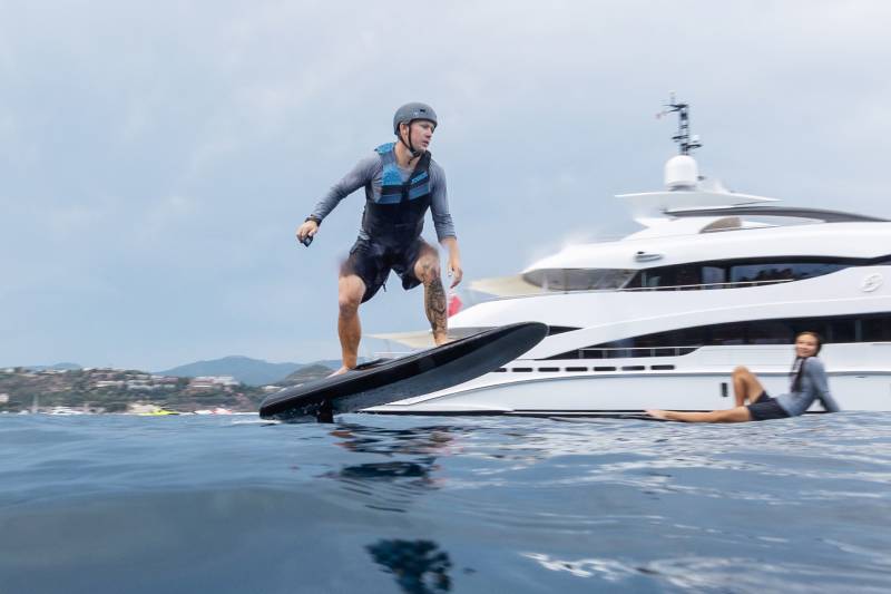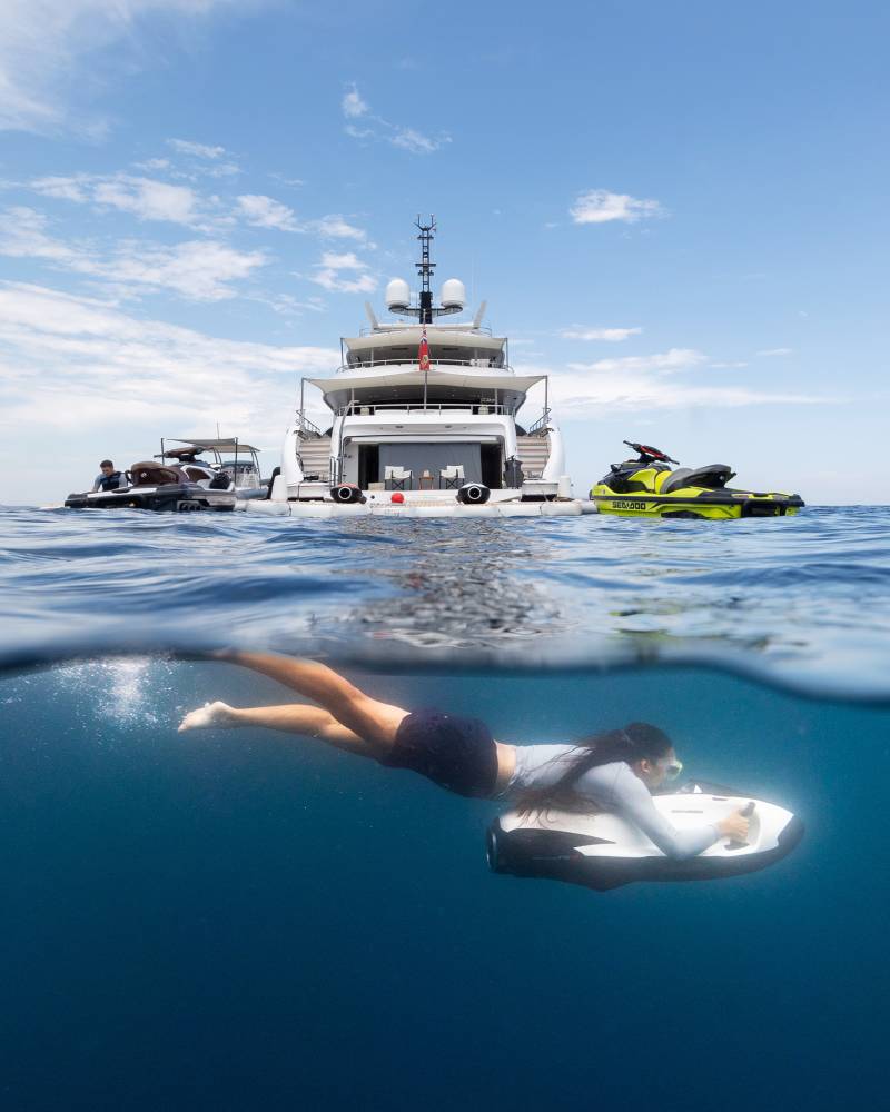 Whether you’re chasing adrenaline or gliding at your own pace, Altair’s toy box is packed with next-level kit to make the most of every anchorage. Zip across the water on one of her high-powered Jet Skis, dive in with the Seabobs, or carve silently along the surface on the electric Fliteboard.