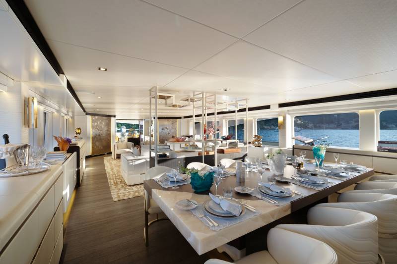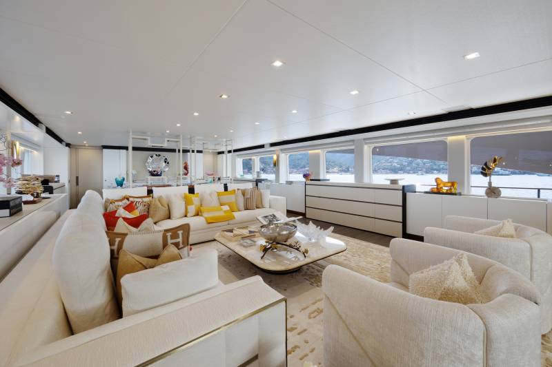 Following a full interior refit in 2025, superyacht Altair now showcases a timeless sense of style with a contemporary edge. Light and spacious, her interiors are bathed in natural light thanks to oversized windows that bring the outside in.