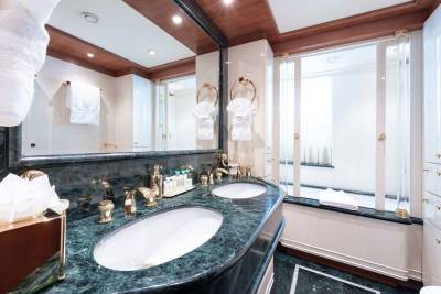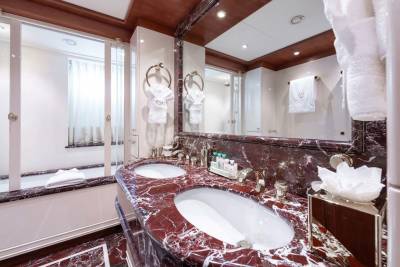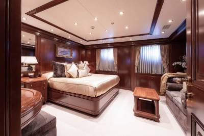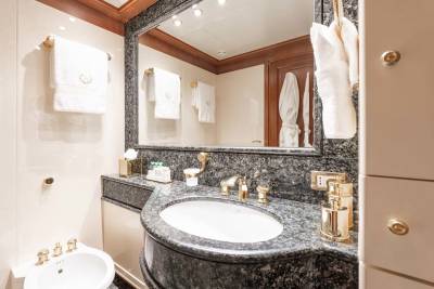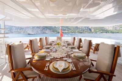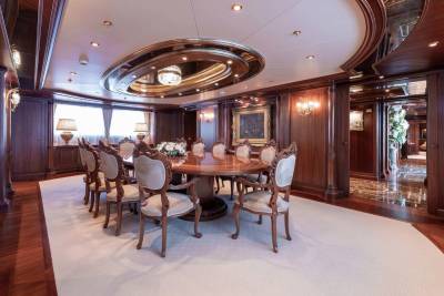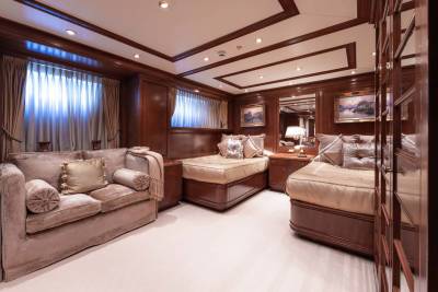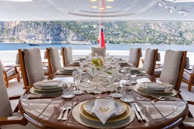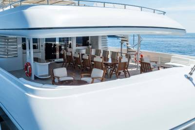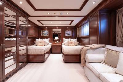 The Lloyd’s classified Apogee comprises a steel hull, aluminium superstructure and an internal volume of 1,126 GT. Sleeping 12 guests in six cabins, serviced by 17 crew, the boat hits a respectable top speed of 16 knots making it a family favourite for both long cruising charters and nipping between bays for days of exploration.