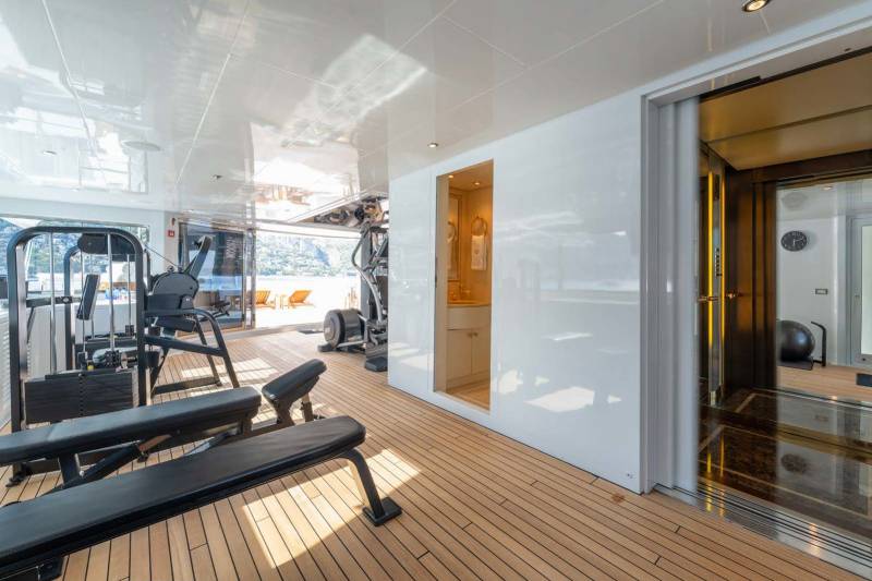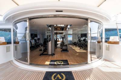 Apogee’s fully equipped glass-encased gym provides inspiring views while working out. From treadmills and elliptical steppers to a range of free weights equipment and cycle machines, the spacious area directly opens onto the shaded aft deck, with cool sea breezes ventilating the gym whenever needed.