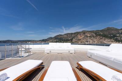 Contained within Apogee’s sprawling deck space is a litany of outdoor lounging areas. Al fresco dining, a stretched wet bar, elaborate sofas and expansive sun beds create a floating paradise for both sun worshipers and shade seekers alike. There’s even a morning coffee nook on the sundeck forward, ideal for starting the day the right way.