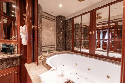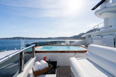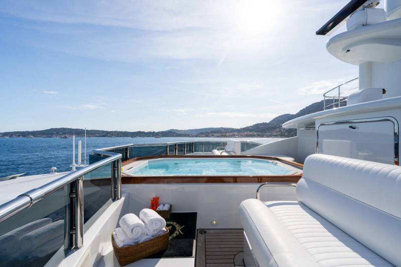 Apogee’s on-deck Jacuzzi on the dazzling sun deck brings the spice of life to a luxurious charter. Offering panoramic views of the alluring surroundings and coupled with spacious seating, it’s an enticing area to cool off, warm up or simply drink in the sun set scenery with a few sun downers in hand.