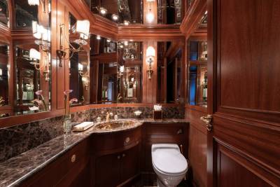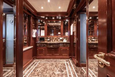 Channelling the greatest members’ club in the world, Apogee’s sky lounge boasts one of the longest bars ever featured on a yacht. Six sumptuous leather clad armchairs sit opposite a mirrored cocktail bar with room enough for three bartenders. Subtle lighting, games of chess and opulent sofas round off the Groucho’s vibe.