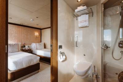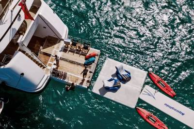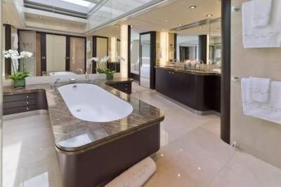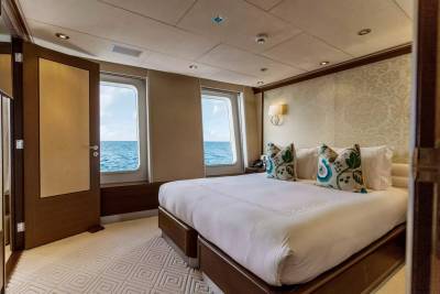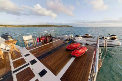 Exuding Feadship quality throughout, Bella is a best in class yacht. Maintained to an exceptional standard, she is one of the most impressive feadships on the water. 12 guests are accommodated in 6 suites which include a full beam owner’s stateroom with sliding skylight and a VIP suite on the upper deck. Relax on the sun deck or in the steam room adjacent to the swim platform, or launch the fleet of water toys, including tenders, seadoos, an inflatable trampoline, slide and paddleboards. For the ultimate event, the crew can set up a full beach party.