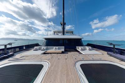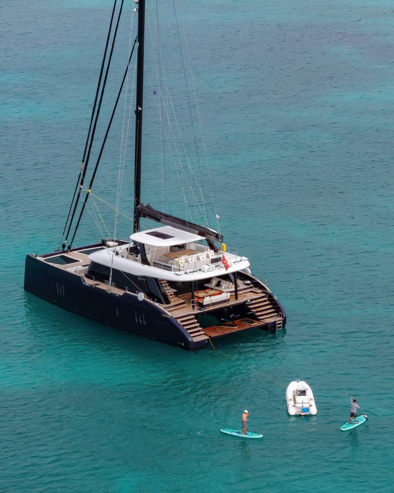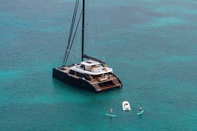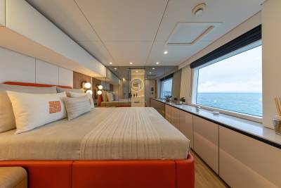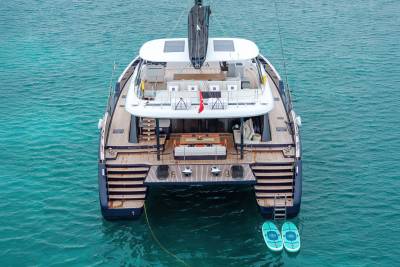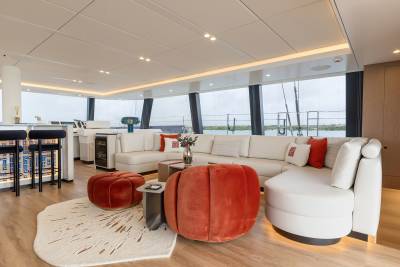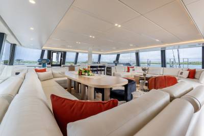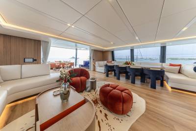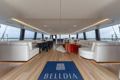 Launched in 2025, Belldia is a Sunreef catamaran for charter that is all about enjoying life on the water. The yacht accommodates up to eight guests in four beautiful cabins. With generously proportioned living spaces imbued with style and sophistication, there are several areas in which to relax and unwind. Inside the open plan salon has abundant natural light, a large dining area and an inviting lounge space.