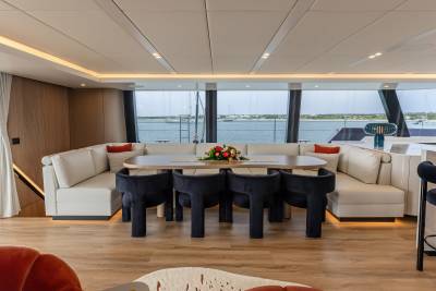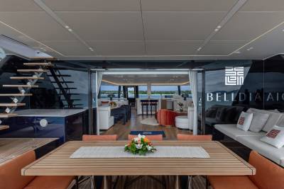 Thanks to the wide, open-plan layout, the contemporary living spaces are spacious and light. Charter yacht Belldia feels light, bright and airy with room to socialize and enjoy quality time spent with friends or family.