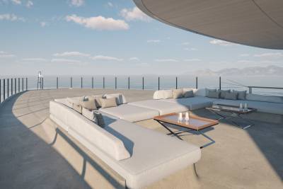 Designed for owners who value openness, light and connection, vast floor-to-ceiling windows frame uninterrupted sea views, while multi-layered terraces and fold-out wings bring guests closer to the water than ever before. From the Cabana Deck at sea level to the expansive upper deck with four-metre-high ceilings, every area is thoughtfully designed to offer practical luxury, flexibility and a sophisticated sense of freedom at sea.