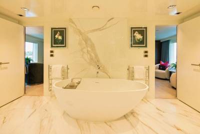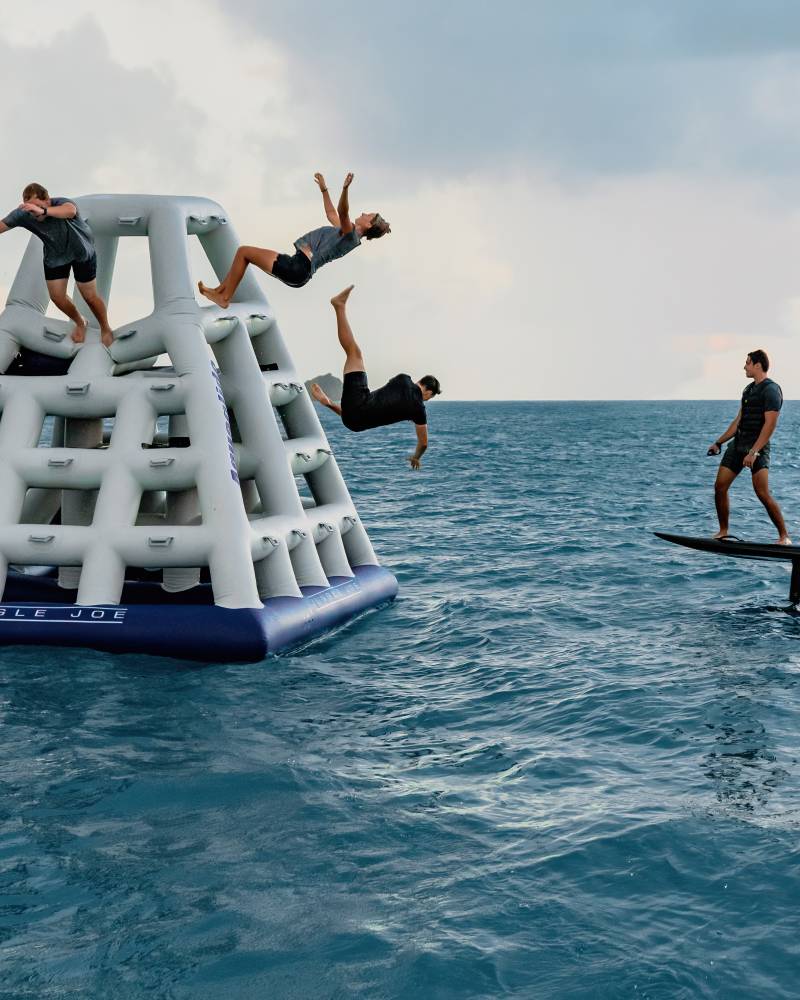 Multiple deck areas encourage guests outside, whether for sunbathing, fitness sessions or simply watching the activity unfold around the swim platform.