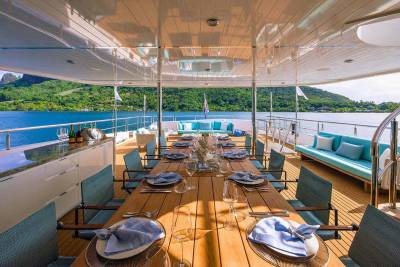 With a large chase tender, extensive fitness kit and a deep watersports inventory, Big Sky turns each anchorage into a playground. From early‑morning training sessions to full afternoons on the water, everything is in place to keep energy levels high throughout the charter.