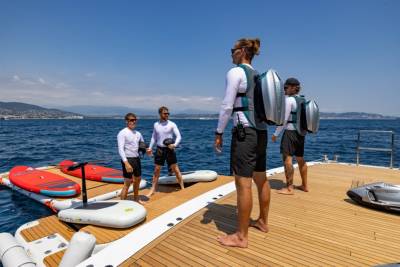 Glide silently above the waves with twin Audi eFoils – a must-try for adventurous guests.