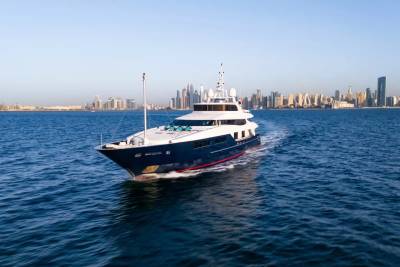Delivered by Baglietto in 2009 with exte3riors and interiors crafted by designer Francesco Paszkowski, Burkut is a motor yacht for sale that combines bold exterior lines with elegant interiors. Her navy-blue hull and white superstructure give her instant presence. From a grand piano in the main salon to a spa and gym below deck, Burkut is full of thoughtful detail. Accommodating 10 guests in five cabins, she’s designed for comfort on long voyages and makes every anchorage feel like home. A standout sundeck with Jacuzzi and al fresco lounge sets the tone for easy outdoor living. Burkut is now offered for sale and remains one of Baglietto’s most compelling custom yachts for sale. A balance of pedigree, performance, and confidence.