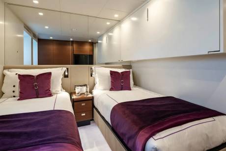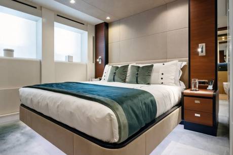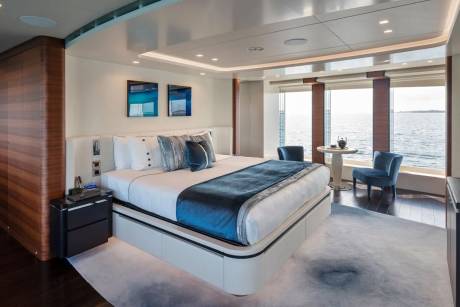 Ela’s 6 sumptuous staterooms are particularly spacious, with a total of almost 350 square metres taken up by the main deck owner’s suite (with its feature oversized shower in the ensuite) and the remaining five cabins on the lower deck – a full beam VIP, two doubles and two twins.