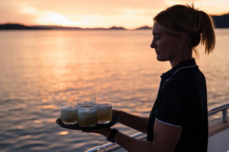 Evenings settle back on the aft deck, where there is plenty of room for dinner under the stars. After a last swim or paddle, guests move inside for films or cards in the saloon, while the crew reset the decks for the next day. Encore’s layout means there is always a quiet corner to slip away to, even at maximum guest capacity.