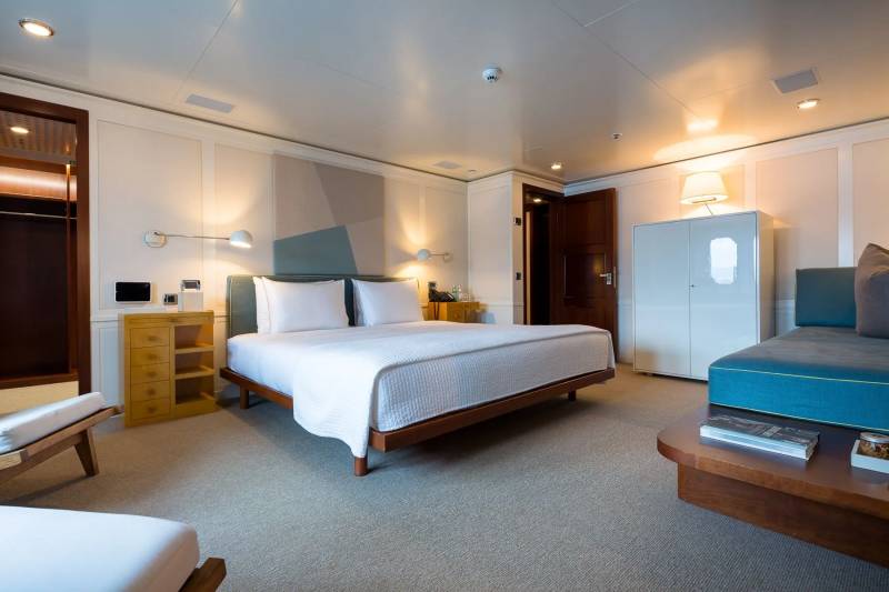 With 11 beautifully proportioned suites for 12 guests, HBC offers exceptional space and flexibility. A private owner’s deck forms a quiet retreat with panoramic views and its own terrace, while the main deck VIP and a collection of king and queen cabins give every guest room to settle in. Large windows, wide corridors and Reymond Langton’s refined palette create a calm, residential feel that matches long charters and mixed‑group cruising perfectly.