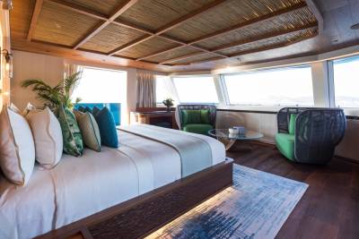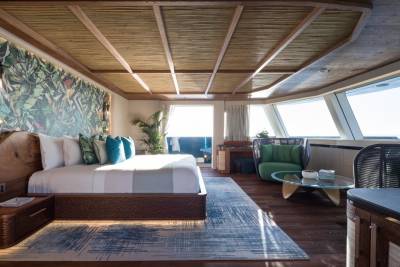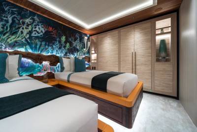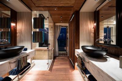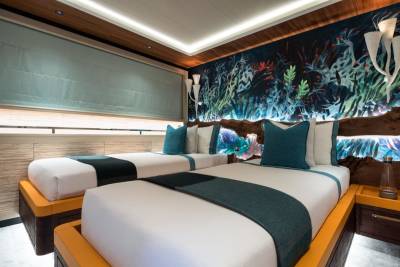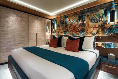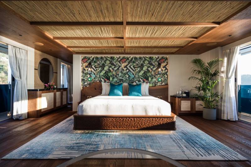 King Benji’s layout is built around open views and versatile zones. Expect soft edges, curated artwork, and calm colours that shift subtly from deck to deck. Her main salon is made for relaxing, entertaining, or just watching the world go by with every door wide open.