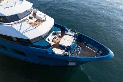 Built with a steel hull and aluminium superstructure, King Benji was engineered to go far and wide, in comfort and style. Whether crossing oceans or coasting from cove to cove, she cruises effortlessly with full onboard comfort.