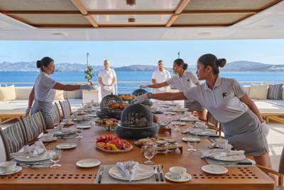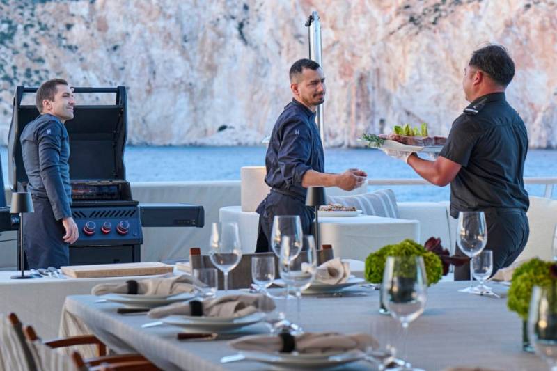 21 crew, each with their own lane — from spa therapists to cinema techs. Expect smooth days, creative moments, and personalized service that just works. With nearly two decades in yachting, Captain George Mammis brings calm leadership and real-world know-how. He’s ready to deliver exceptional, effortless charters.