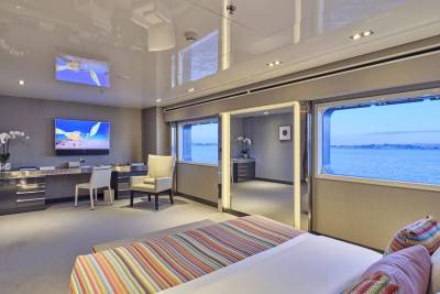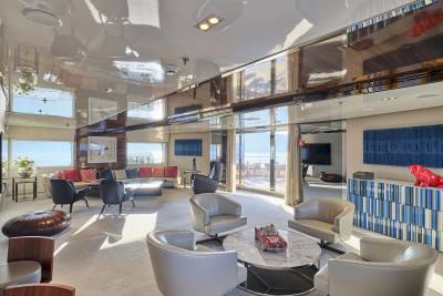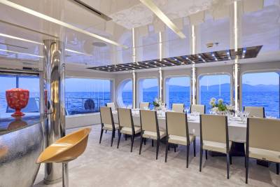 At 72m Marquise is large in both size and possibilities with the fun factor running through all areas. Welcoming no less than 28 guests in 14 cabins, with a further 30 crew on hand day and night, it’s an unmatched all-aluminium party platform ideal for stable cruising. Built in 2004 by Austal Ships and refit in 2017 to a high specification, Marquise is a yacht of substance and volume, where multiple outdoor dining options, recreational areas and vast deck spaces are interlinked by a lattice of stairways spread across five levels.
