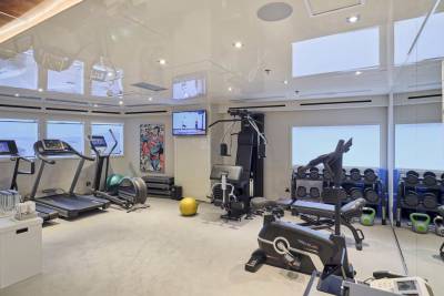 Work up a sweat in the fully equipped gym with sea views, then soothe those aching muscles with a massage in the dedicated spa area. It’s paired with a sauna and beauty salon, meaning you can pamper yourself for hours before hitting the decks ready to party.
