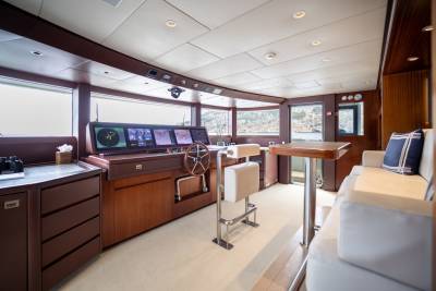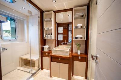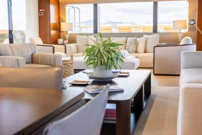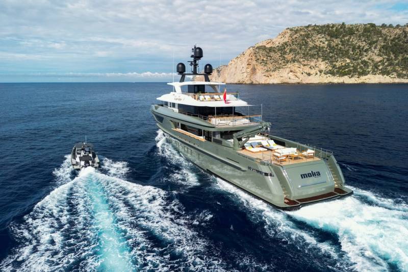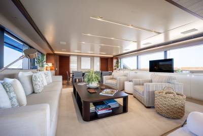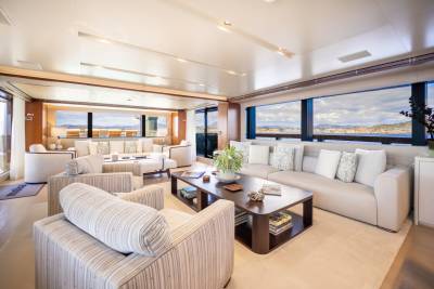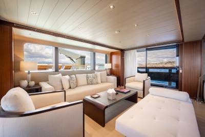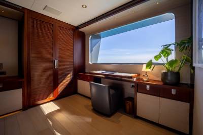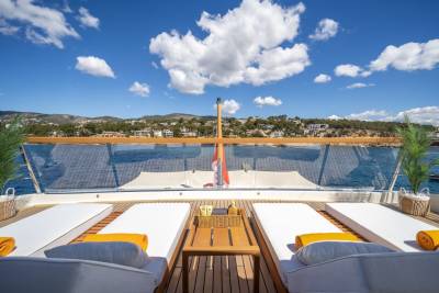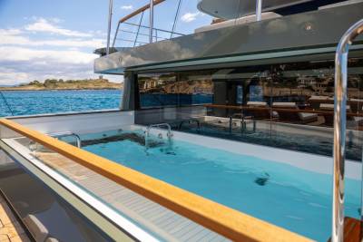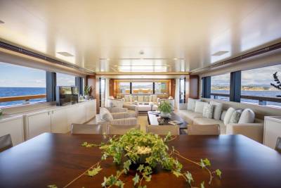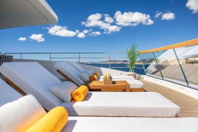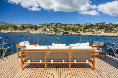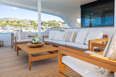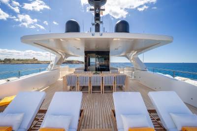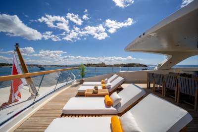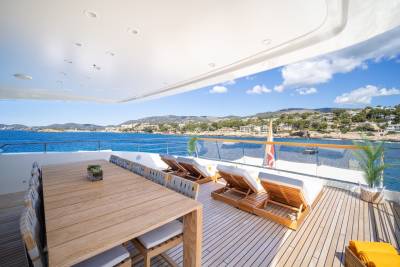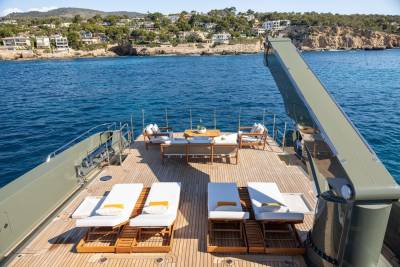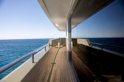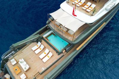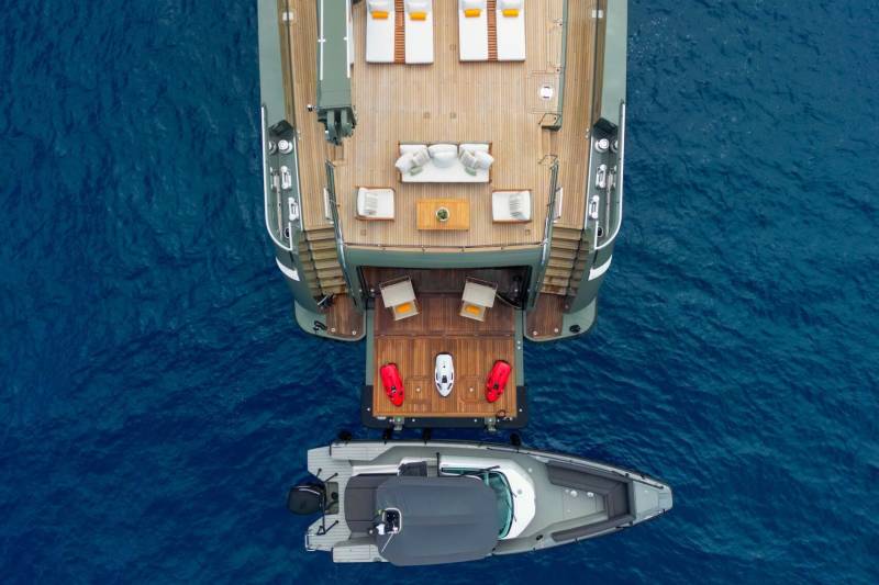 Moka's main deck aft, with 4.5 tonne crane, has room to store a 9m tender and jet skis, or even a submarine. At anchor this area transforms to a multi-purpose recreational space.