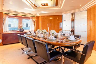 Mystique’s bespoke interior is designed to remain calm and comfortable whether cruising or running fast. Spacious living areas, refined finishes and a carefully planned layout allow guests to move easily between social spaces while enjoying uninterrupted views and natural light throughout.