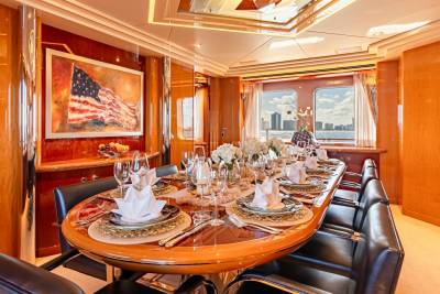 Few motor yachts combine speed, range and reliability like Mystique. Her propulsion package pairs twin MTU 16V4000 M90 diesel engines with a Vericor TF-50 Lycoming gas turbine, delivering a combined 12,900 horsepower. The result is a top speed of 35 knots, a comfortable cruising speed of 14 knots and impressive efficiency across her operating profile.