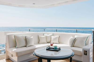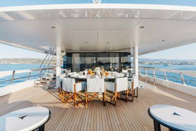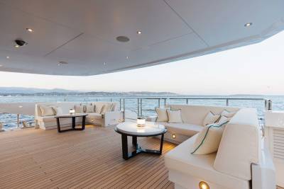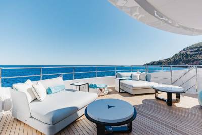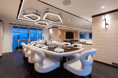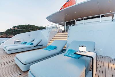 Orion is a superyacht that marries ultra-modern aesthetic with open-plan spaces. Her floor-to-ceiling windows are the highlight, giving you full scenic views of the ocean and breathtaking landscapes. Whether you’re relaxing in her spacious salons, or outside enjoying deck views, Orion keeps you close to nature.