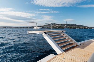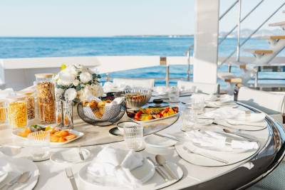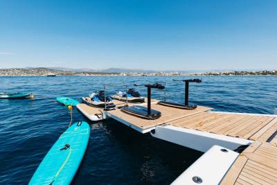 Enjoy open-air dining, a fully stocked bar and a large Jacuzzi on the sundeck. Orion is designed with water sports and relaxation in mind – her beach house with an extendable platform is perfect for mixed groups wanting spa and fun in equal measure.