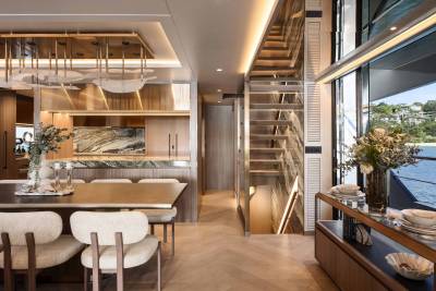 With five cabins for ten guests, space for up to 35 on day trips and a tri deck layout almost 200 GT in volume, Orraia feels much larger than her length suggests. The yacht for charter boasts a beach club swim platform, bridge deck jacuzzi, spa, multiple indoor-outdoor lounges and a culinary programme built around native ingredients and coastal produce. This is Australian yacht life, up close and personal.