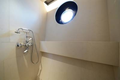 The five cabins optimize space and light, natural wood finishes enhance the calm ambiance on board. Minimalist light fittings and smooth surfaces continue the clean styling from the rest of the interiors.