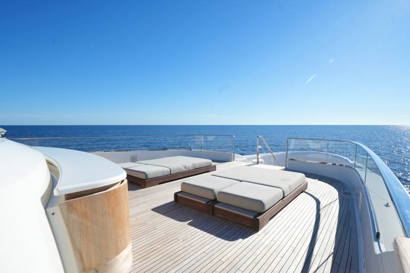 The large sunpads forward are perfect for sun worship, while the sociable sun deck, with ample sunbathing space, a bar and a jacuzzi is ideal for spending quality time with loved ones.