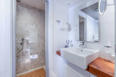 Guests gravitate to the aft deck — and for good reason. It adapts to suit the mood, whether it’s transformed into a gym with punch bag and yoga mats, or cleared for dancing under the stars. The tender and toy line-up ticks every box, from adrenaline to zen.