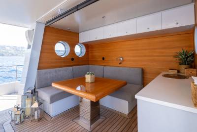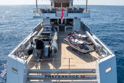 Preference 19 isn’t here to follow the rules. Her broad decks, convertible spaces and beachy vibe make her feel more like a 50m+ barefoot resort than a 36m yacht. She’s charter-ready, family-ready, and built for those who play just as hard as they relax.