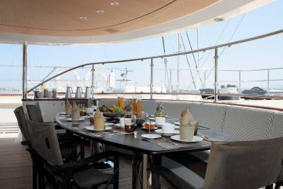 Her beautifully designed, generous main salon is capable of hosting up to 30 guests. This area is perfect for hosting large gatherings or events, blending elegance and functionality seamlessly.