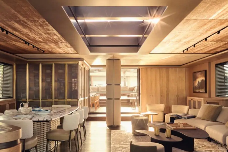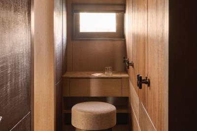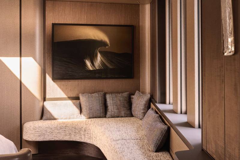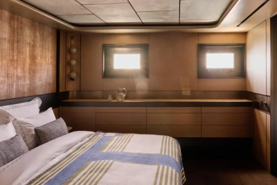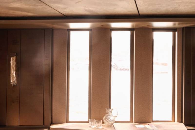 A new-generation hybrid sailing yacht where quiet power meets traditional craft. Nothing flashy, everything intentional. Forget fast furniture and synthetic finishes. Seven’s interiors – designed by K Interiors – are tactile, authentic, and made to last. The materials feel real because they are: natural wood, hand-stitched textiles, hand-forged bronze. It’s refined simplicity, not showiness.