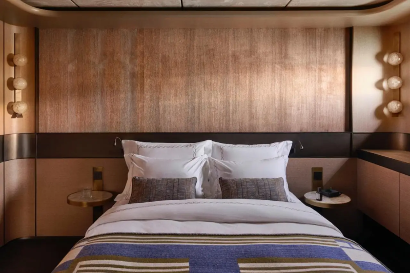 Each cabin on Seven feels personal. Textured woodwork, soft lighting, and muted tones wrap you in calm. Ideal for slow mornings, blissful rest, or unwinding after a day on the water. Sustainably finished interiors. No plastics. Just natural materials that feel good.