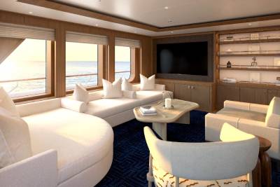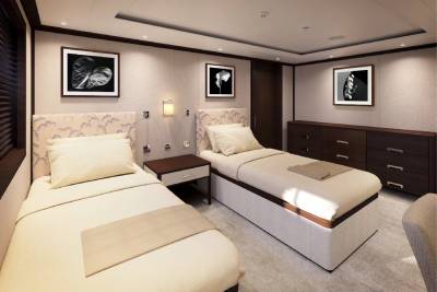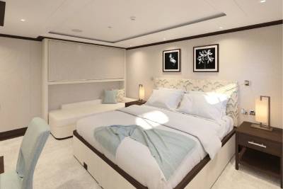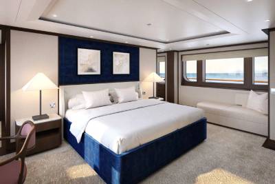 Designed by Vickers Studio, the interiors are warm and contemporary, perfect for families and private groups. Five guest suites welcome 12 guests, with two additional berths for guides or specialists. Her tender game? Unmatched – including a 12m Espen Øino-designed chase tender for remote landings and multi-day excursions.
